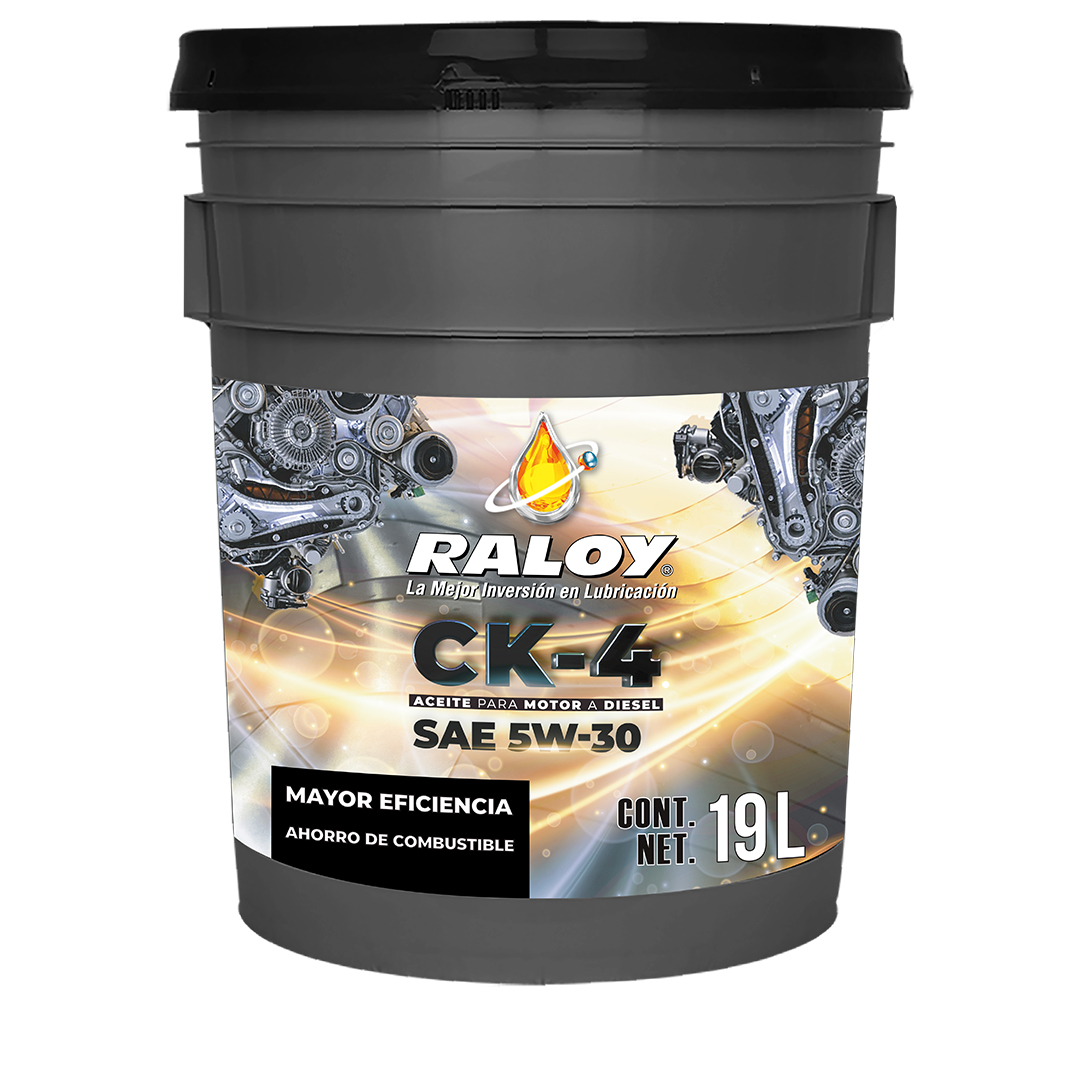 Raloy lmproved Extraperformance SAE 5W-30 API CK-4 se recomienda para su uso en una amplia gama de aplicaciones y ambientes operativos en la industria del transporte, minería, construcción, agricultura, marina y en equipo fuera de carretera que operan en condiciones severas de baja velocidad o carga pesada, de fabricantes Estadounidenses, Europeos y Asiáticos que utilicen combustible Diesel con un contenido de azufre de hasta 500 ppm. Cumple los requisitos de las más recientes especificaciones de los fabricantes de equipo original (OEM), desarrollado para mantener la durabilidad del sistema de control de emisiones donde se utilizan filtros de partículas y otros sistemas avanzados de postratamiento. Para motores nuevos en garantía consulte los periodos de drenado recomendados por el fabricante. Recomendado para motores a diesel de 4 tiempos modelo 2017 anteriores y en adelante, con sistema de control de emisiones y post tratamiento (filtro de partículas) que usan diésel con un contenido de hasta 0.05% en peso de azufre y puede sustituir a las categorías DH-4, DI-4, DI-4 PLUS y DJ-4 (CH-4, CI-4, CI-4 PLUS y CJ-4). Consultar recomendación del fabricante del motor para el periodo de cambio, si el contenido de azufre en el diésel es mayor a 0.0015% en peso de azufre.