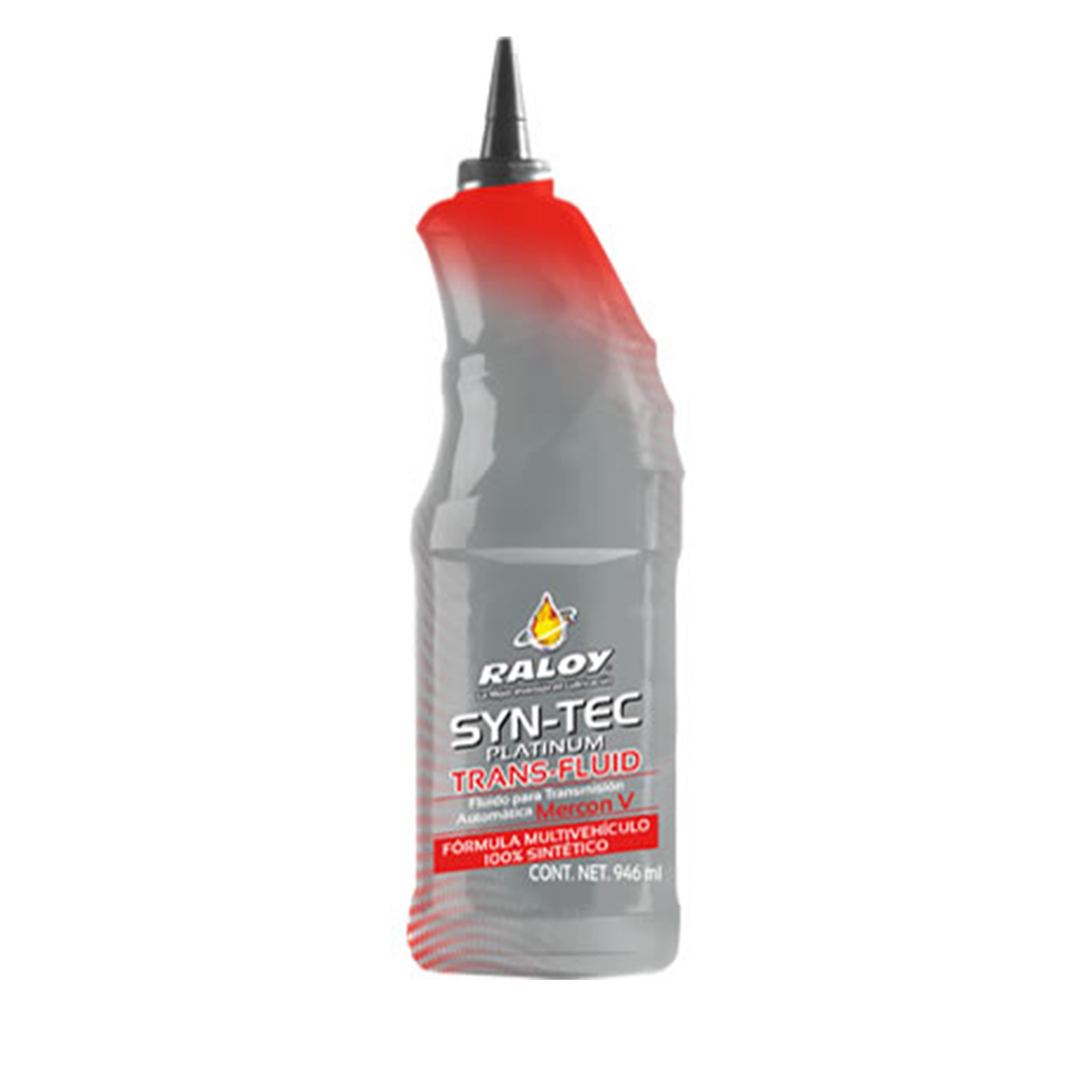 Raloy Syn-Tec Platinum Mercon V es un fluido multivehículo para transmisión automática, está formulado con bases sintéticas que le proporcionan una excelente resistencia a la oxidación y a la degradación térmica. Es un lubricante sintético multifuncional para transmisiones automáticas, hidráulicas y direcciones asistidas de vehículos. Este fluido ha sido diseñado para cumplir los estrictos requisitos de periodo prolongado de cambio establecidos por ZF. NOTA: CONSULTAR LA TABLA DE USO APROPIADO EN LA FICHA TECNICA